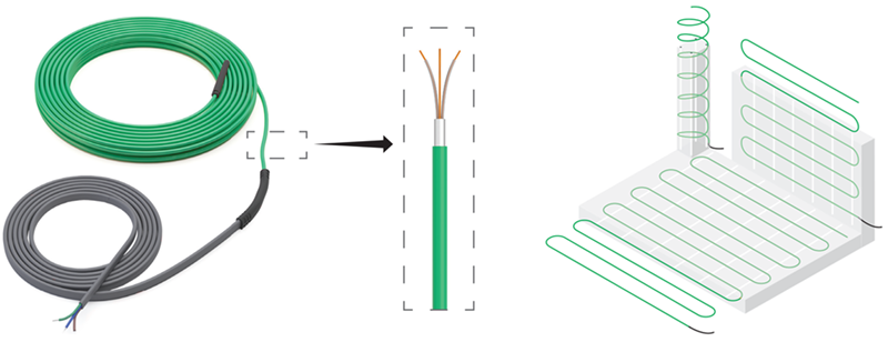 Резистивный кабель — имеет одинаковую мощность нагрева по всей длине. Регулирование мощности осуществляется с помощью термостата.