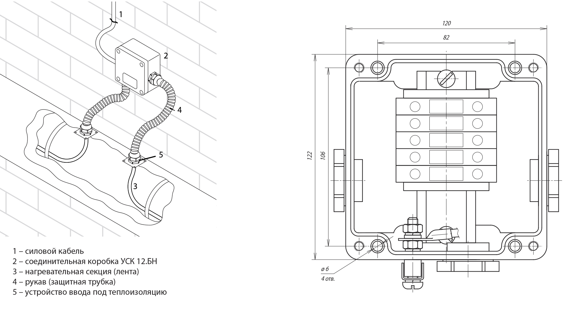 • Корпус коробки УСК 12.БН с клеммным набором — 1