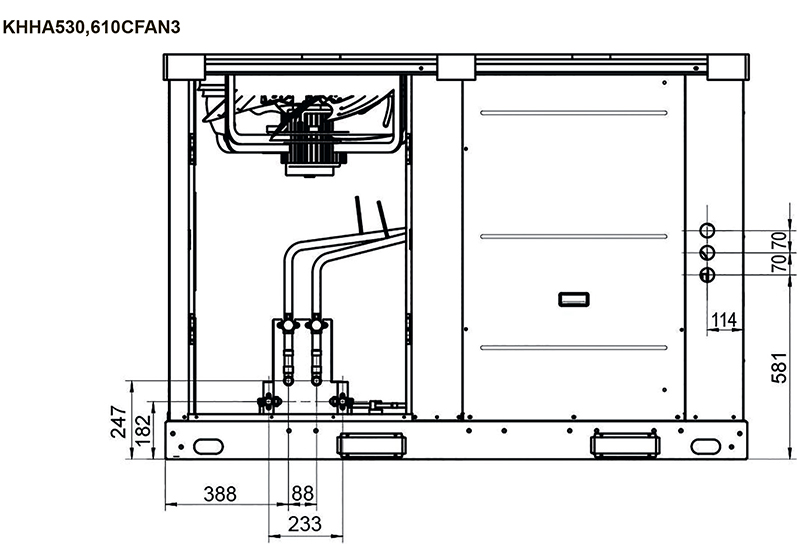 ККБ работает совместно с приточной вентиляционной установкой в качестве охладителя поступающего воздуха в системах вентиляции помещений. Также он совместим с различными видами внутренних блоков и с центральными кондиционерами. Оснащен встроенным блоком автоматики, который управляет работой компрессора и вентилятора, контролирует состояние защитных устройств, предотвращает частый запуск и выключение компрессора.
