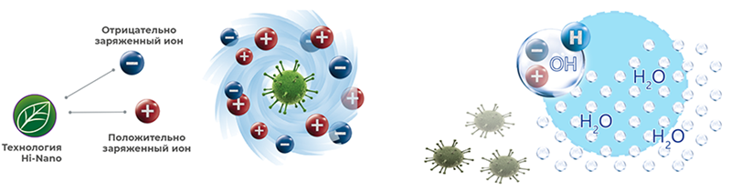 - Ni Nano (ионизатор) — превосходно борется с бактериями, вирусами, плесенью и запахами и способствует удалению пыли и пыльцы, создавая положительно и отрицательно заряженные ионы