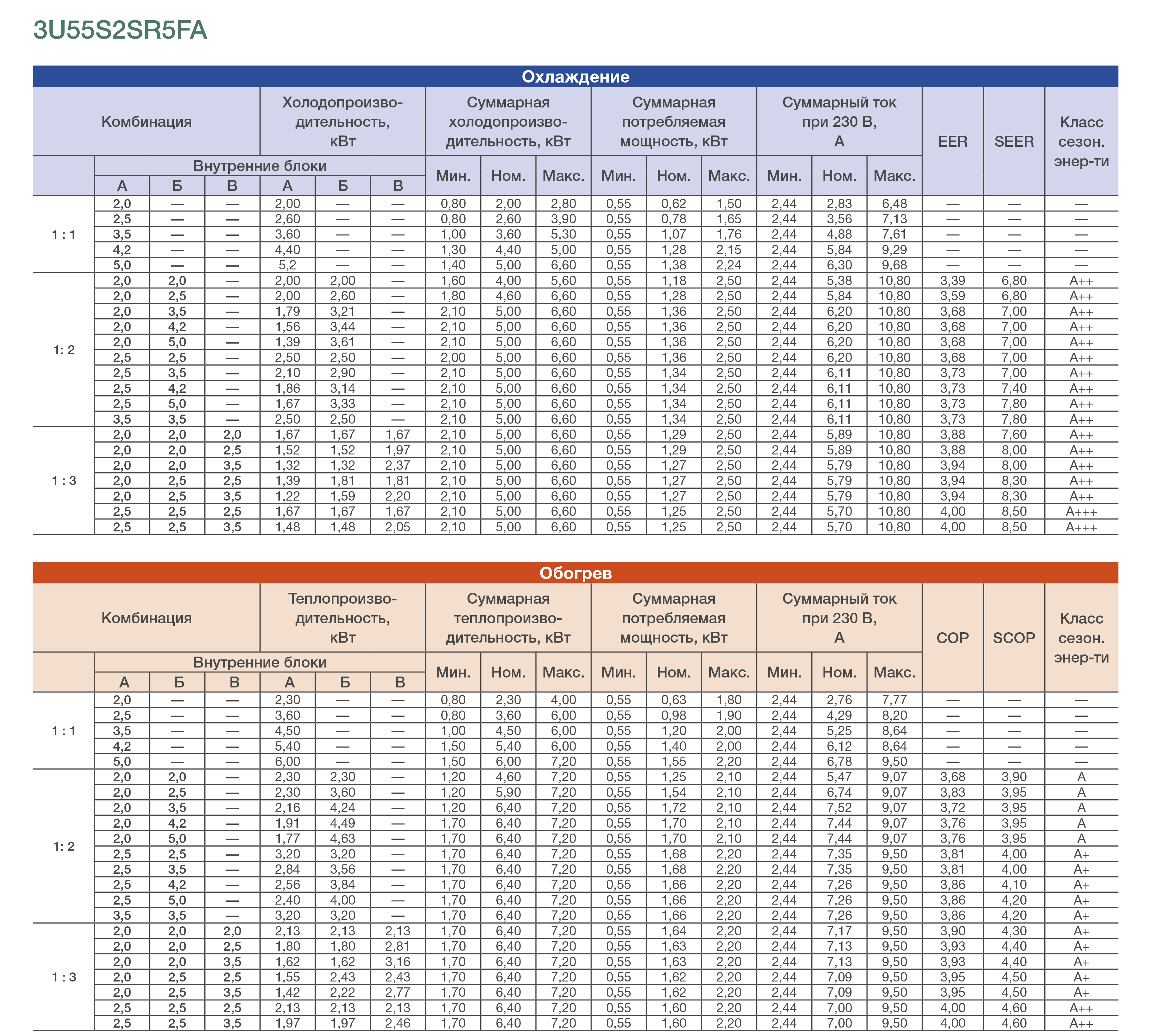 - Технология SUPERMATCH — модели могут использоваться как в сплит, так и в мультисплит комбинациях.