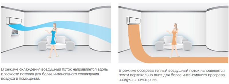 - 3D Airflow — управление горизонтальными и вертикальными жалюзи с пульта позволяет максимально точно настроить направление объемного воздушного потока.