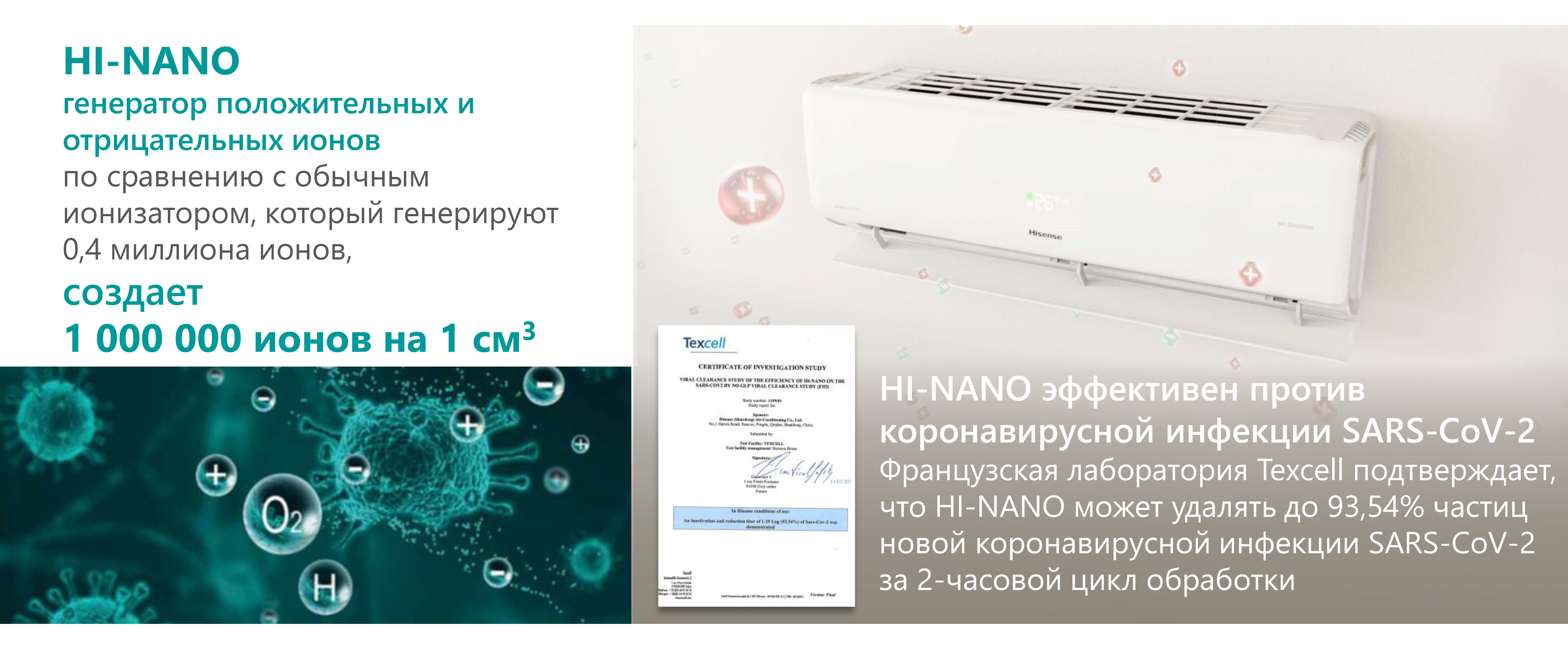 • Hi-Nano — эффективнее обычного ионизатора более, чем в 3 раза. Интенсивно ионизирует воздух, делая его чистым и свежим.