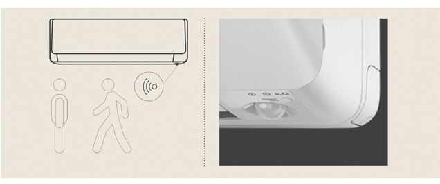 • Eco Sensor — датчик присутствия, распознает присутствие человека в помещении и интенсивность его передвижения. На основе анализа определяет интенсивность работы сплит-системы и необходимость перехода в энергосберегающий режим.
