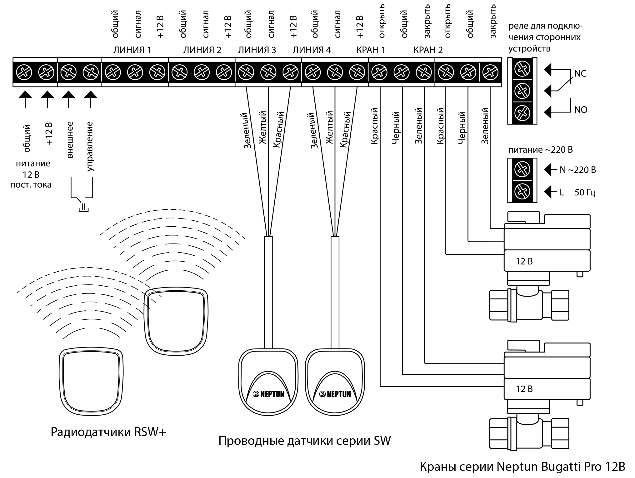 Проводная и беспроводная - для датчиков, Проводная - для кранов