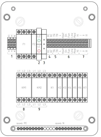 Управляющий блок предназначен для комплексного управления промышленными воздушно–тепловыми электрическими завесами ГРЕЕРС ЗВП-М-Е и обеспечивают пуск, остановку и защиту подключаемых завес.