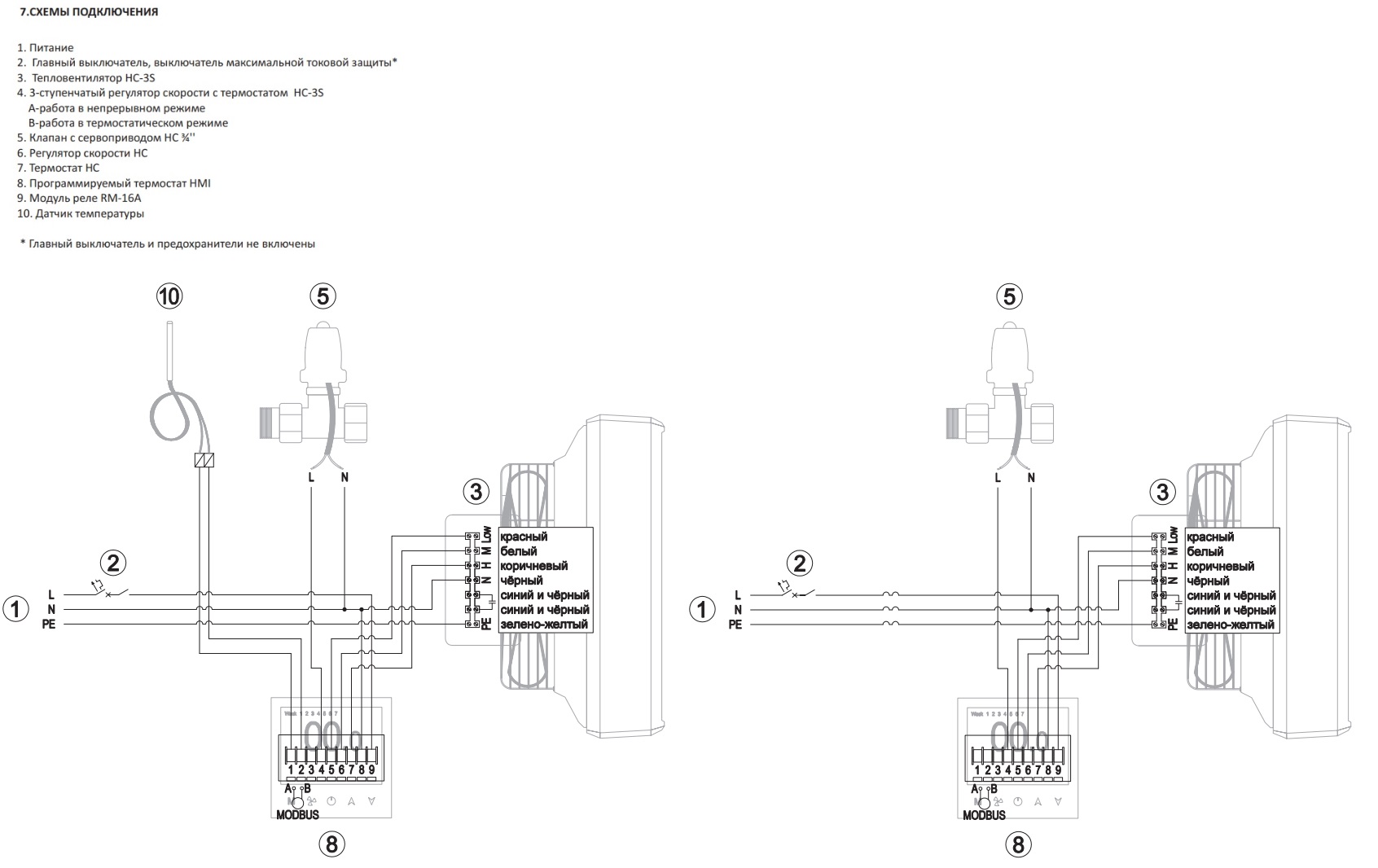 Используется для управления тепловентиляторами с двигателями AC. В комплект с термостатом входит внешний датчик  который позволяет считывать температуру в необходимом месте, даже удаленно.Возможность создания еженедельного (5 + 1 + 1) цикла управления, отличающегося заданной температурой. Точный контроль в пределах ± 0,5 °C заданной температуры. Память данных, когда устройство выключено. Устройство дополнительно контролирует работу исполнительных механизмов, установленных на регулирующем клапане. Имеет коммуникационный протокол MODBUS, позволяющий интегрировать термостат с системой управления зданием BMS.