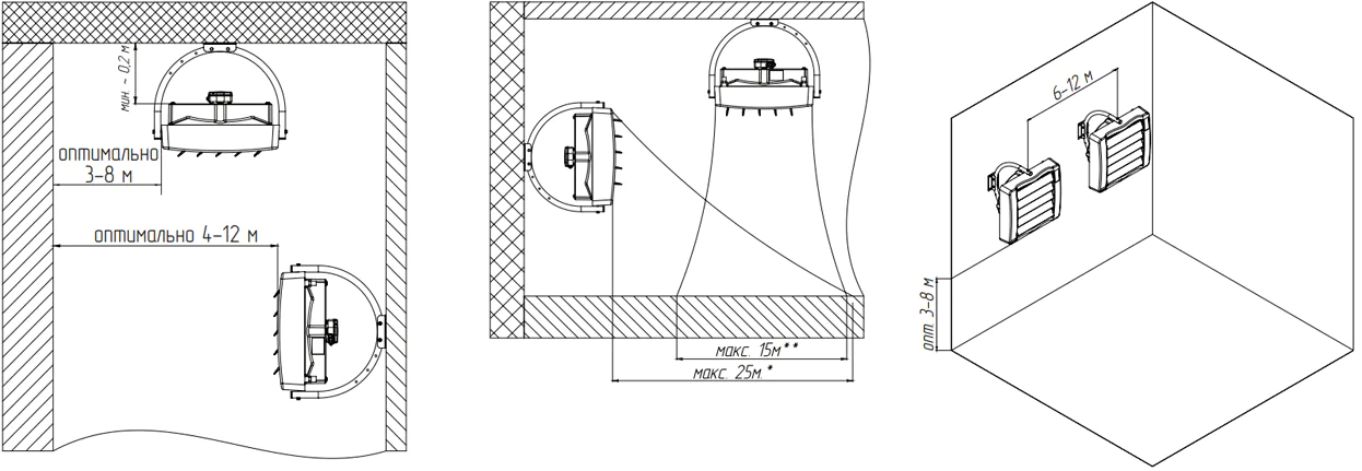 Варианты размещения при настенном монтаже: