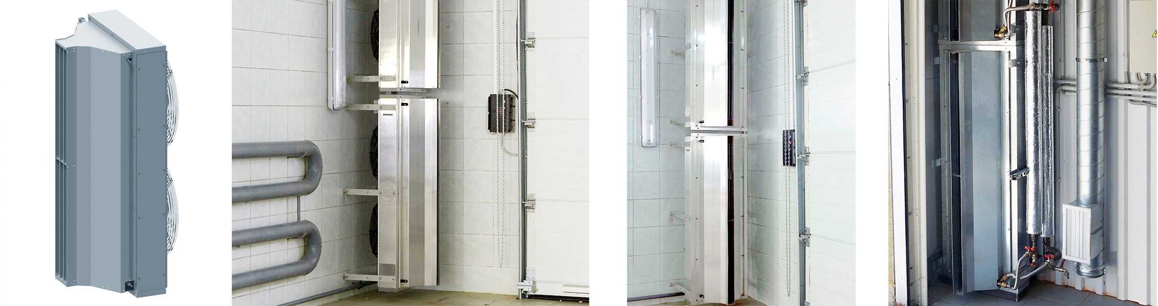 Промышленная тепловая завеса шиберующего (отсекающего) типа из оцинкованной стали с защитой корпуса IP54 (допускается капельная влага, туман). Устанавливается внутри помещения, горизонтально над проемом или вертикально, сбоку от него, как можно ближе к краю. При большой ширине проема можно располагать сразу несколько завес вплотную друг к другу и управлять ими с одного пульта. Применяется в складских помещениях, гаражах, производственных предприятиях, ангарах, самолетных и вертолетных площадках, автомойках и других помещениях большой площади.