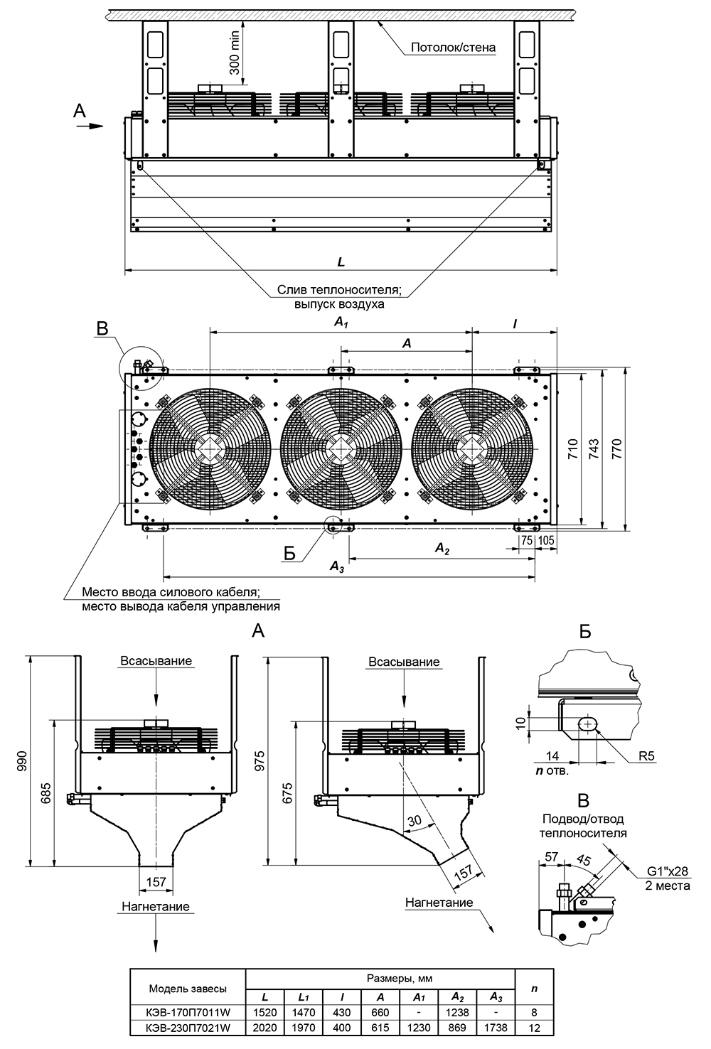 Габаритные и установочные размеры: