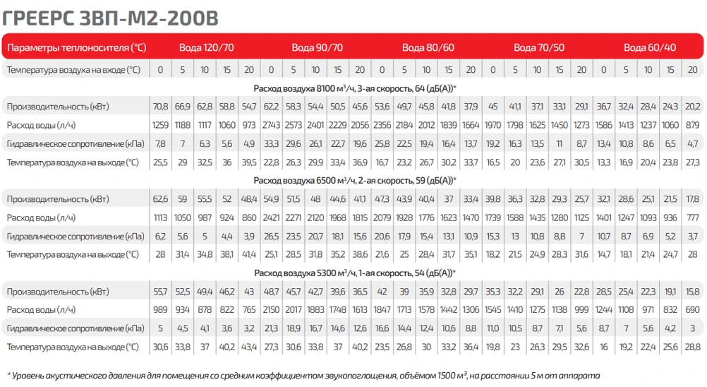 Водяные завесы подключатся к источнику горячего водоснабжения или отопления с помощью гибкой подводки. Принцип работы основан на протекании горячей воды через теплообменник, который отдает тепло струе нагнетаемого воздуха. Корпус завесы изготовлен из оцинкованной стали, имеет конструкцию в виде моноблока, сопло изготовлено из ABS пластика. Воздушные завесы ГРЕЕРС ЗВП-М оснащены трёхскоростным вентилятором с двигателем типа АС и укомплектованы монтажными элементами.